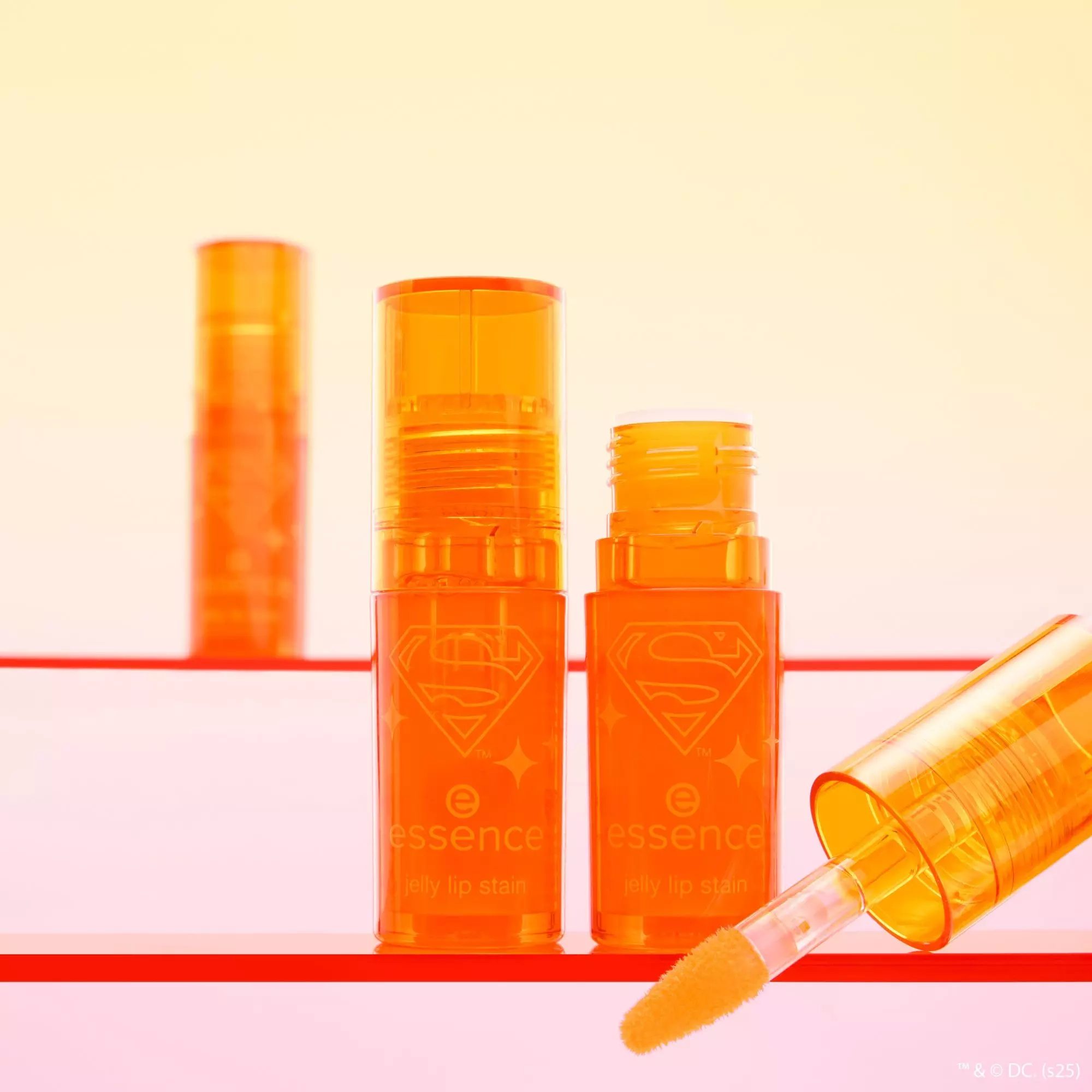 Lipperfectie voor de hele dag – met de essence Superman jelly lip stain 01 Wham! in een gedurfde kersenkleur en 02 Pow! in een oranje-roze tint! Deze zachte, lichte tinten geven je lippen een natuurlijke, stralende tint die urenlang blijft zitten, zelfs na het eten of drinken. De jellytextuur glijdt soepel over de huid en laat een comfortabele, niet-plakkerige finish achter met intense blijvende kracht – perfect voor een avondje uit. Concentreer je op het eenvoudig aanbrengen en vermijd overlining, omdat de lip stains zijn ontworpen om te blijven zitten met het uithoudingsvermogen van een superheld.