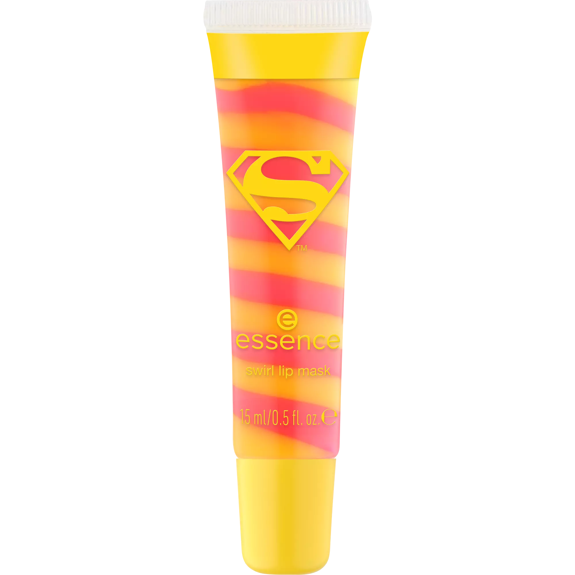Verwen je lippen met het essence Superman wervelend lipmasker! Dit hydraterende lipmasker heeft een uniek roze en geel wervelend ontwerp en een balmachtige, niet-plakkerige textuur die je lippen er zacht en gehydrateerd laat uitzien. Met een lichtroze kleur en een fruitige geur is het perfect als een verzorgende behandeling, dag en nacht; voor verwennerij op superheldniveau.